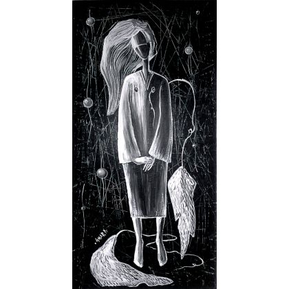 Wydruk własnej pracy na płótnie canvas naciągnięty na drewnianą ramę tzw. krosno, o wymiarach 20x40 cm. Sygnowany na odwrocie