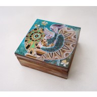 Drewniane pudełko na skarby pt Miłość jak wiatr nie widzisz jej a czujesz, ze zdjęciem obrazu umieszczonym metodą decoupage na wierzchniej części. Boki szkatułki ręcznie malowane. Całość zabezpieczona wiele razy bezbarwnym lakierem. Szkatułka sygnowana w środku.
