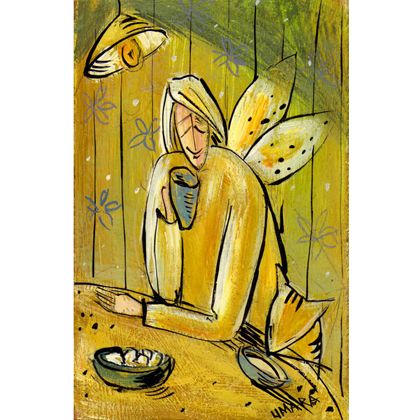 Praca ręczne malowana akrylem na płycie rozmiarem A6 (10 x 15 cm) dopasowana do standardowej ramki do foto