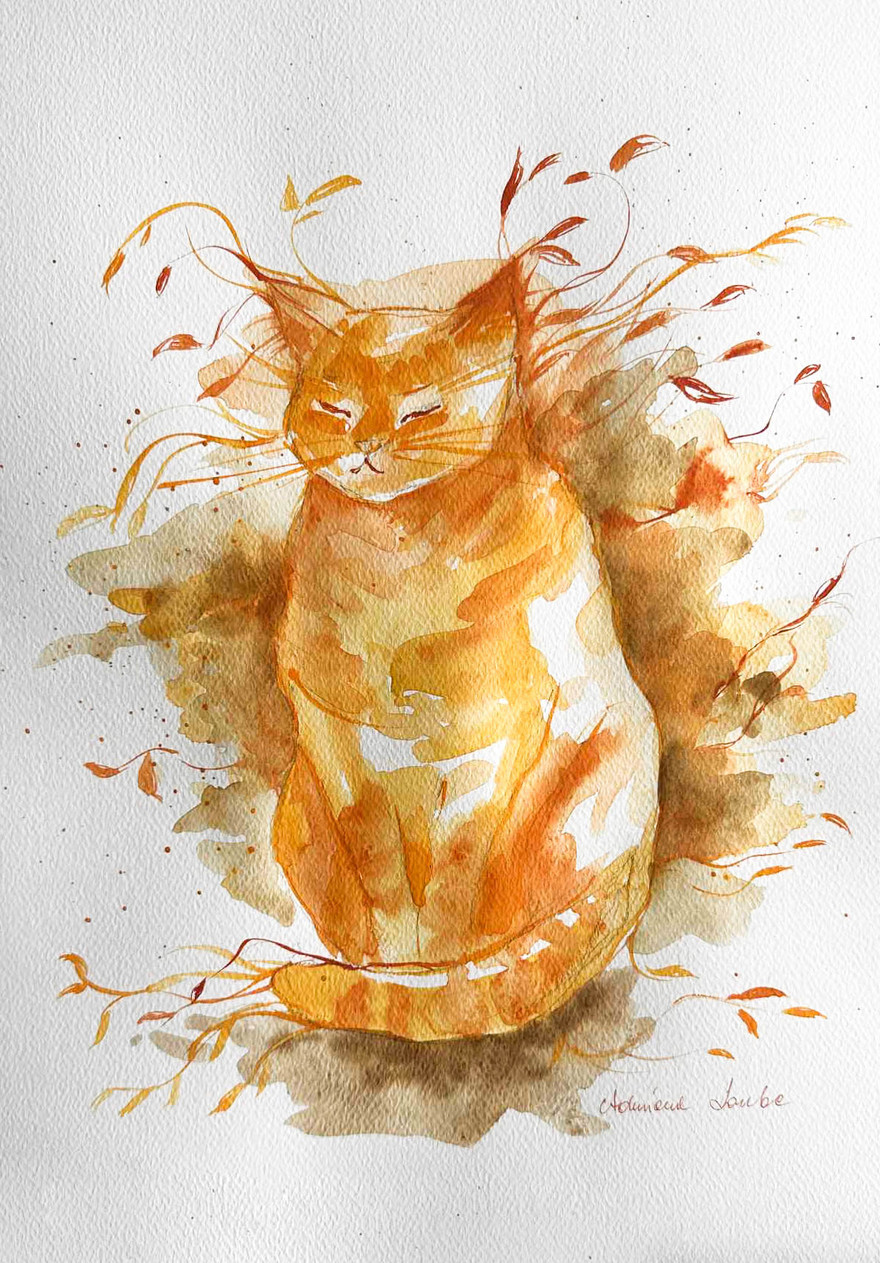 KOCIA MEDYTACJA - akwarela wykonana na białym 300g papierze A3 (42cm x 30cm) przez artystkę plastyka Adrianę Laube.