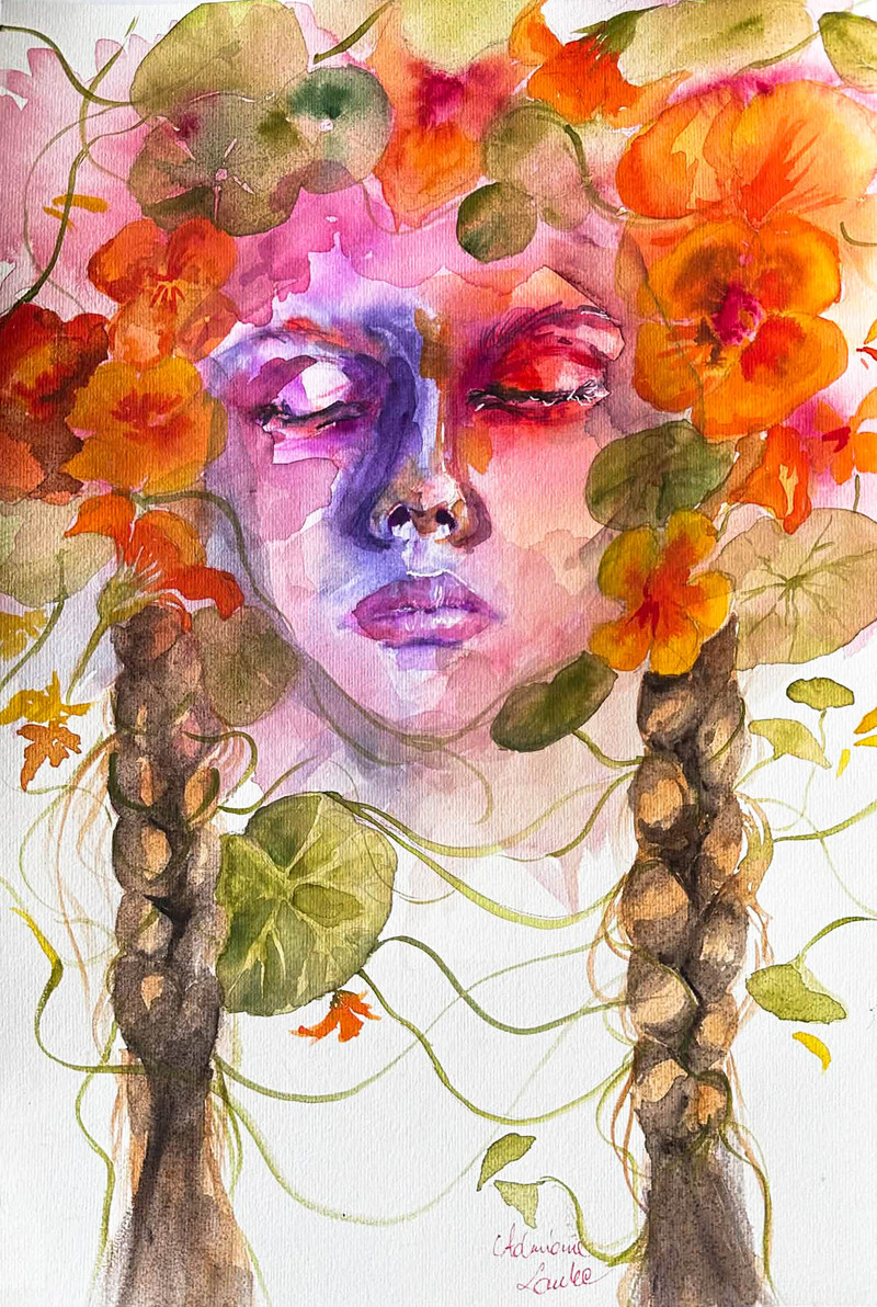 NASTURCJA - akwarela wykonana na białym 300g papierze A3 przez artystkę plastyka Adrianę Laube.