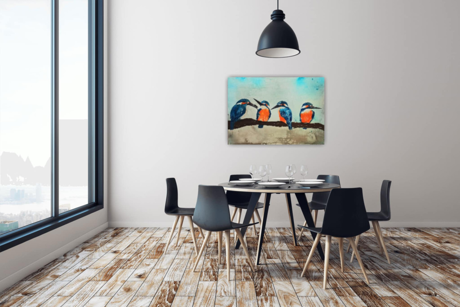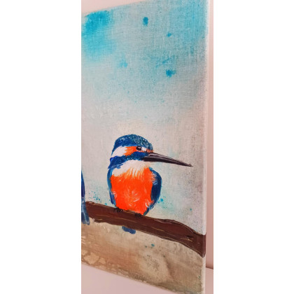 Obraz akrylowy na płótnie 50x70.Zimorodki. Zabezpieczony werniksem.