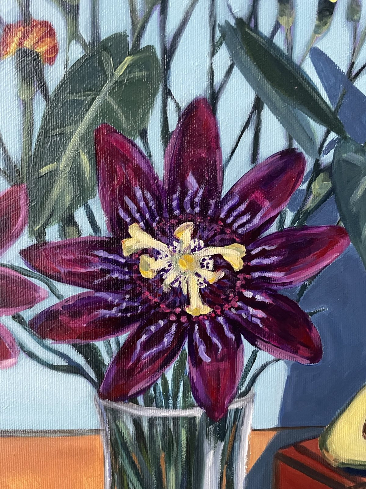 Martwa natura, malowana z obserwacji, z własnych obiektów i własnej kompozycji. Kwiat passiflory - z fantazji