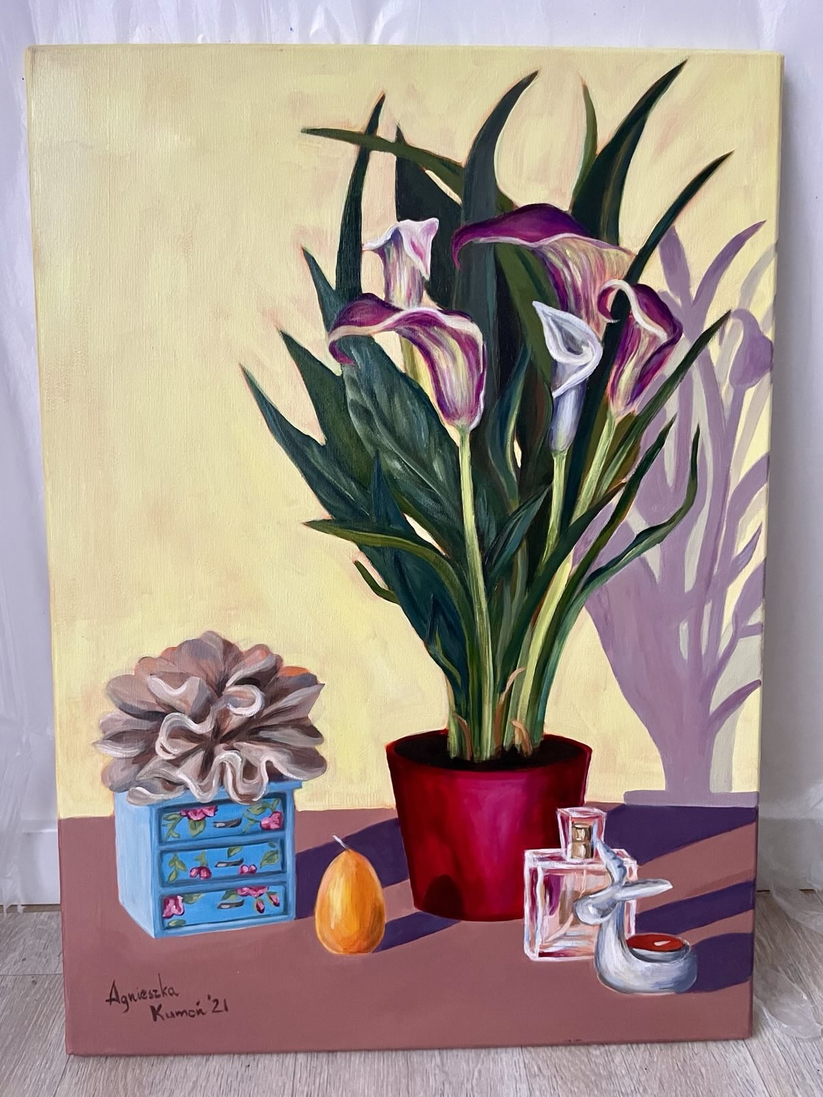 Malowana z natury, z obserwacji — na podstawie moich własnych obiektów i autorskiej kompozycji.