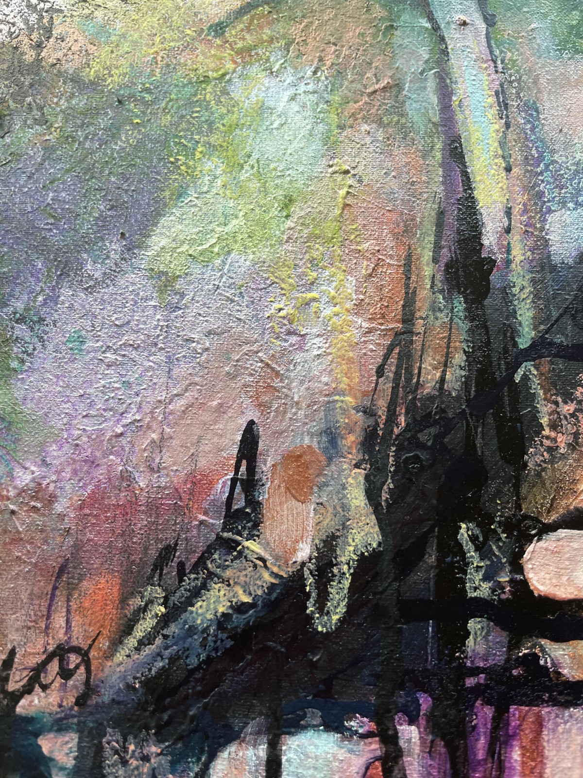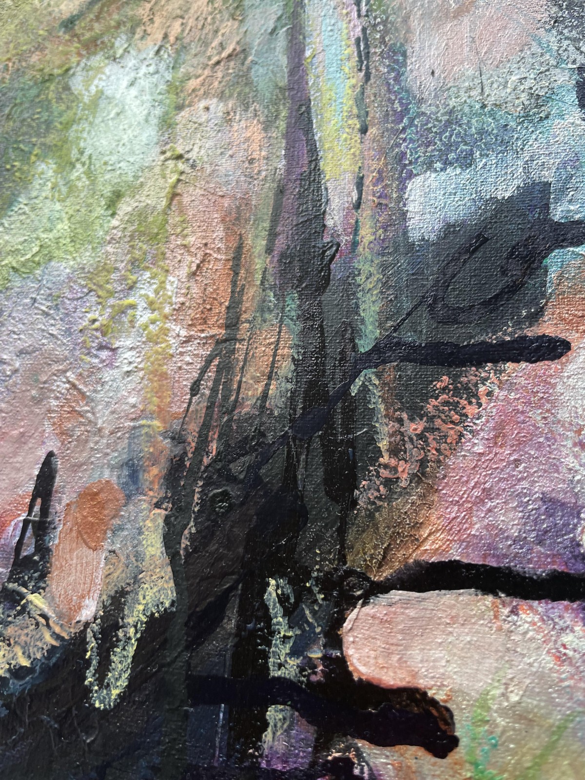 Ostatnio rozwijam elementy metaliczne na obrazach, których połysk widać, gdy patrzymy na obraz pod kątem.
