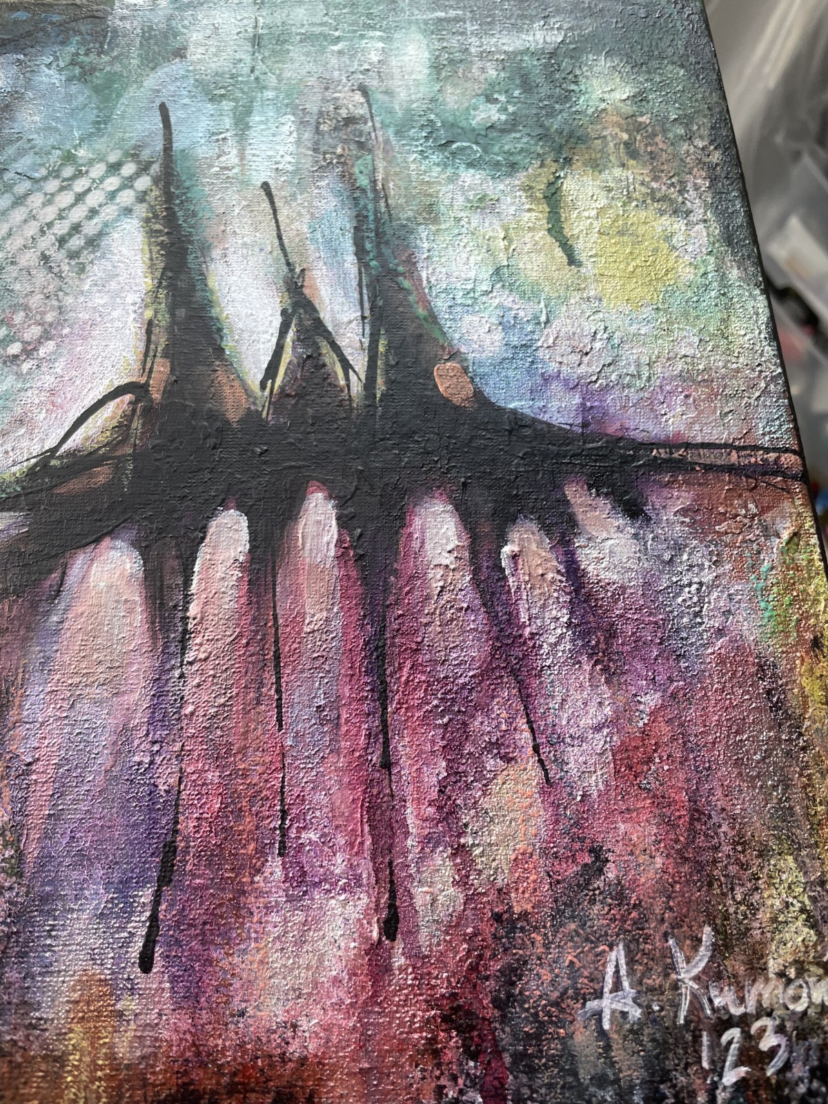Najnowszy obraz Recalibration I, 30×30 cm, technika własna na płótnie.