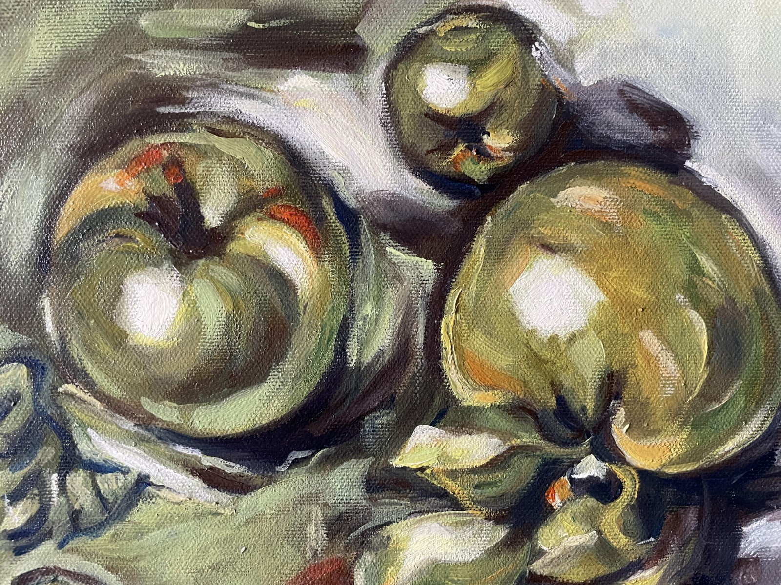 Obraz Jabłka wg C. Monet, 33×41 cm, olej na płótnie, 2019