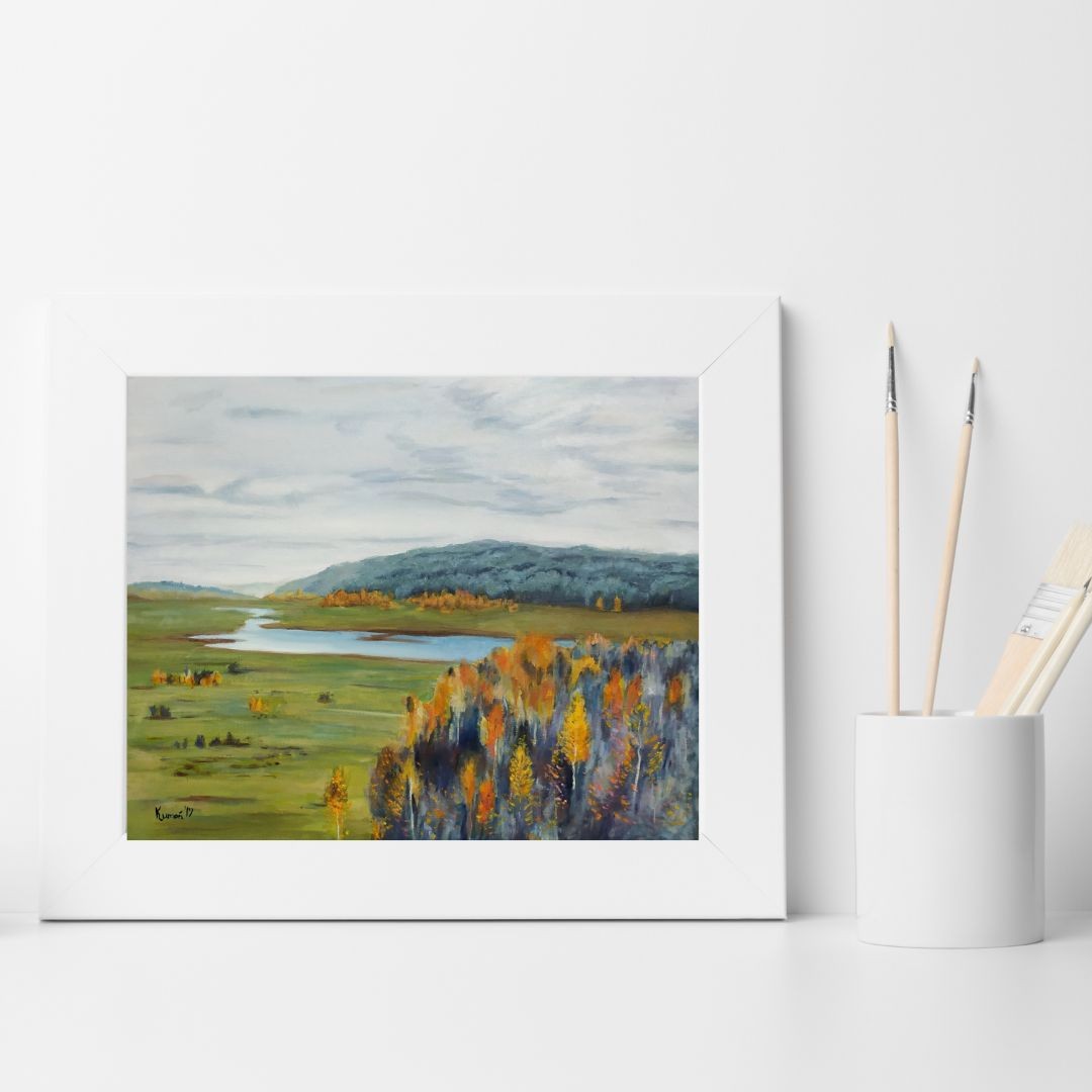Pejzaż powstał na podstawie pracy Issaka Lewitana z drugiej połowy XIX roku, przedstawiający wzgórze porośnięte brzozami i rzekę w oddali. Obraz został wykonany farbami olejnymi w 2019 r. Ze względu na tematykę i wielkość, obraz sprawdzi się zarówno w salonie, sypialni jak i kuchni.