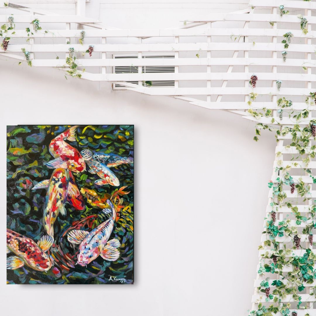 Obraz Ryby Koi, 40×50 cm, olej na płótnie, 2023