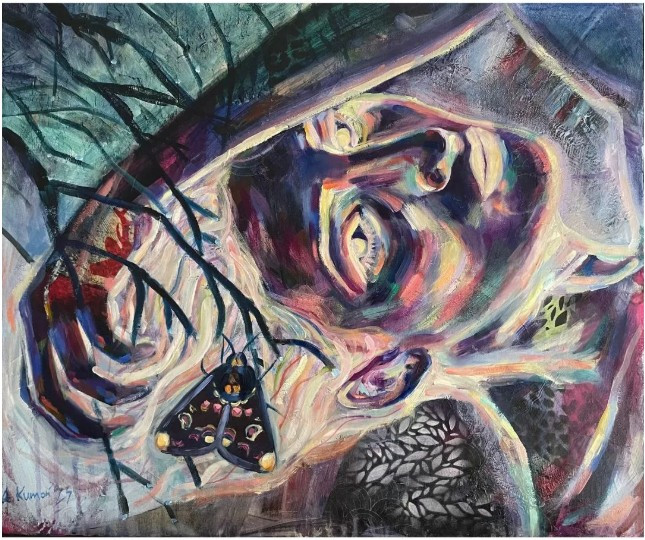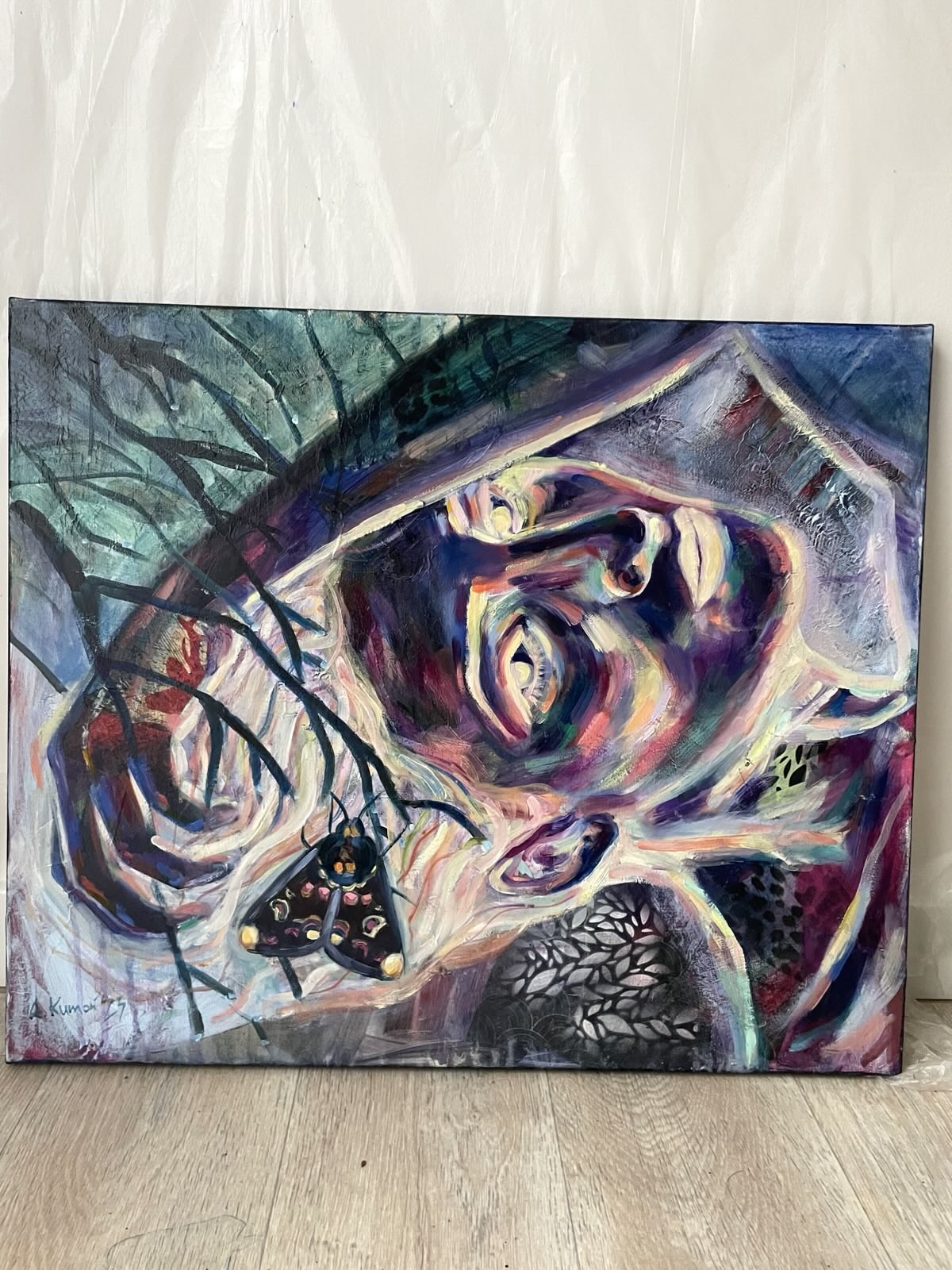 Technika: akryl, spray, kolaż, olej na płótnie