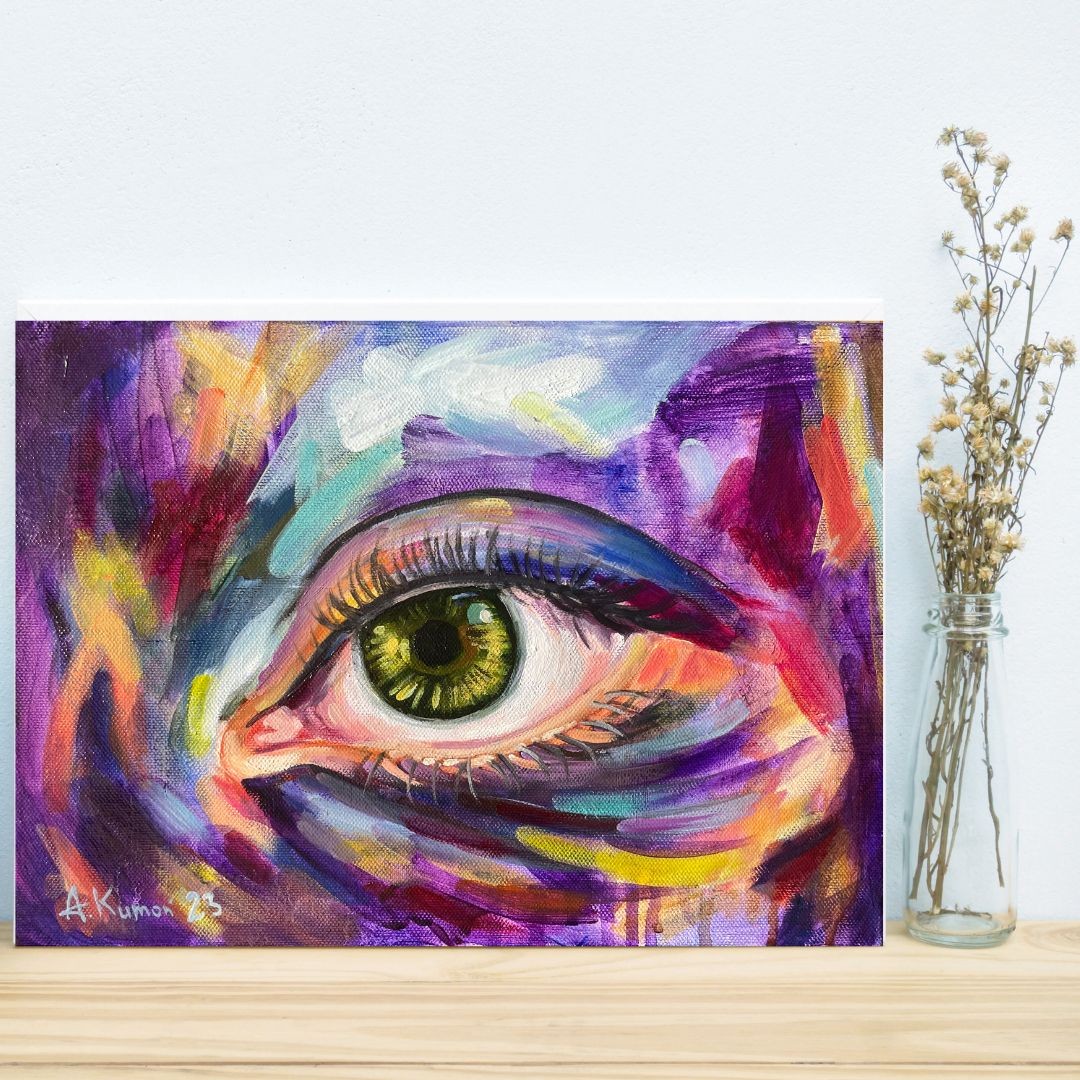 Fascynuje mnie temat oczu - lustra duszy jak i wizji - tej wewnętrznej - zmysł oka wewnętrznego. Tam wewnątrz kształtują się różne wizje - marzenia, jak i te czarne scenariusze, które później projektujemy na świat zewnętrzny poprzez sposób, w jaki go widzimy.