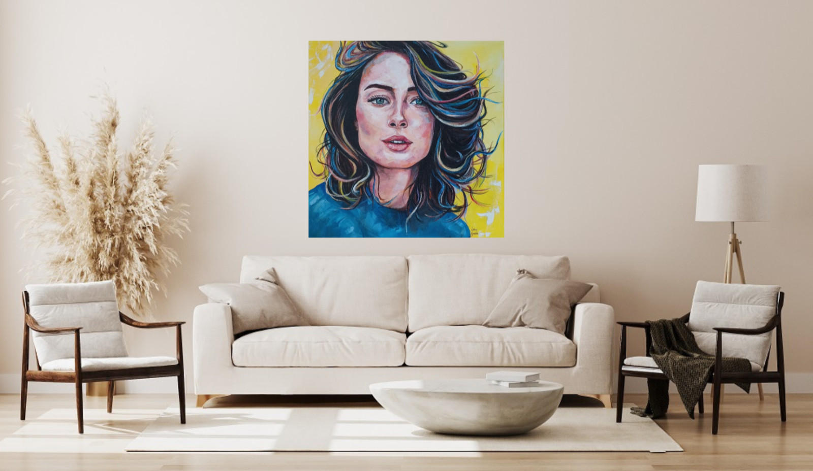 Ręcznie malowany obraz akrylowy na płótnie naciągniętym na drewniany blejtram.