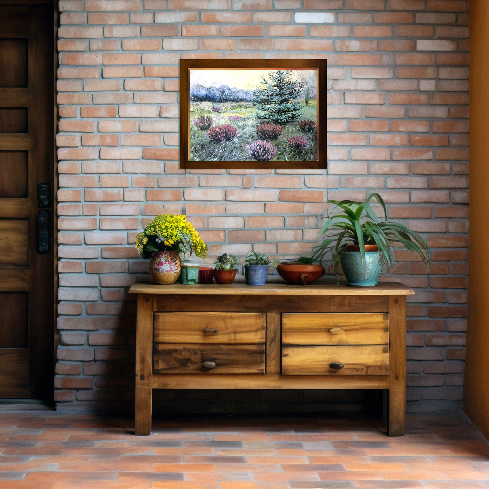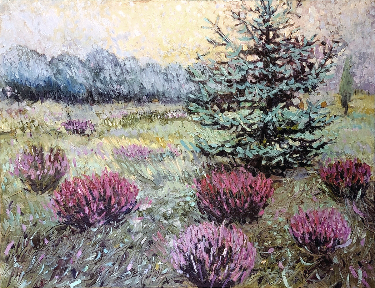 Uroczysko to taka część ogrodu, która jest naturalna. Ma wyglądać jakby ją zaprojektowała natura. Ten zakątek mnie urzekł i stał się tematem obrazu. Kolory są stonowane i przełamane. Boki obrazu są zamalowane. Można więc obraz powiesić bez ramy. Obraz olejny o rozmiarach 40x60 cm. Zabezpieczony werniksem damarowym.. Do obrazu dołączam certyfikat autentyczności.