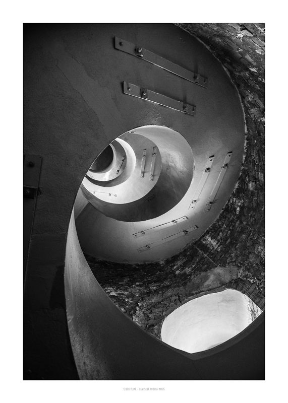 2 plakaty w formacie 50x70 cm z motywem krętych schodów latarni morskiej. Autorskie fotografie drukowane na półbłyszczącym papierze fotograficznym 235 g/m2.
