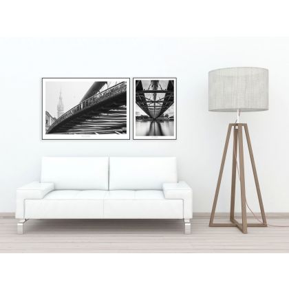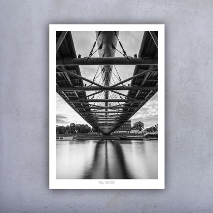 Plakat z serii Kraków - autorska czarno-biała fotografia drukowana na papierze fotograficznym w formacie 50x70 cm. Fotografia przedstawia kadr spod Kładki Ojca Bernatka, tzw. Bernatki.