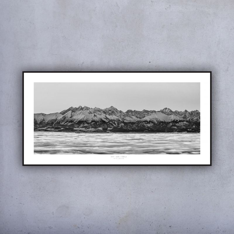 Na dole na środku białej ramki widnieje szary napis Tatry - widok z Turbacza Studio Plama - Agnieszka Potocka.