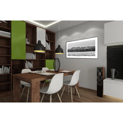 Dodatkowo możliwość wysyłki obrazu w gotowej oprawie w czarnej matowej wąskiej aluminiowej ramie z szybą plexi.
