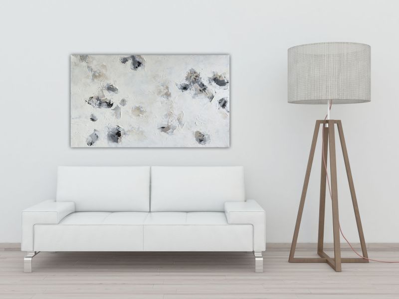 Lekkość jasnych kolorów, niezobowiązujące abstrakcyjne formy i kształty i lekkość powietrza. Obraz abstrakcyjny ?Dzikie gołębie IV? wykonany w technice akrylowej na płótnie, z zauważalną fakturą, to idealna propozycja, by ścianę ozdobił obraz, który utrzyma we wnętrzu harmonię i spokojny ład.