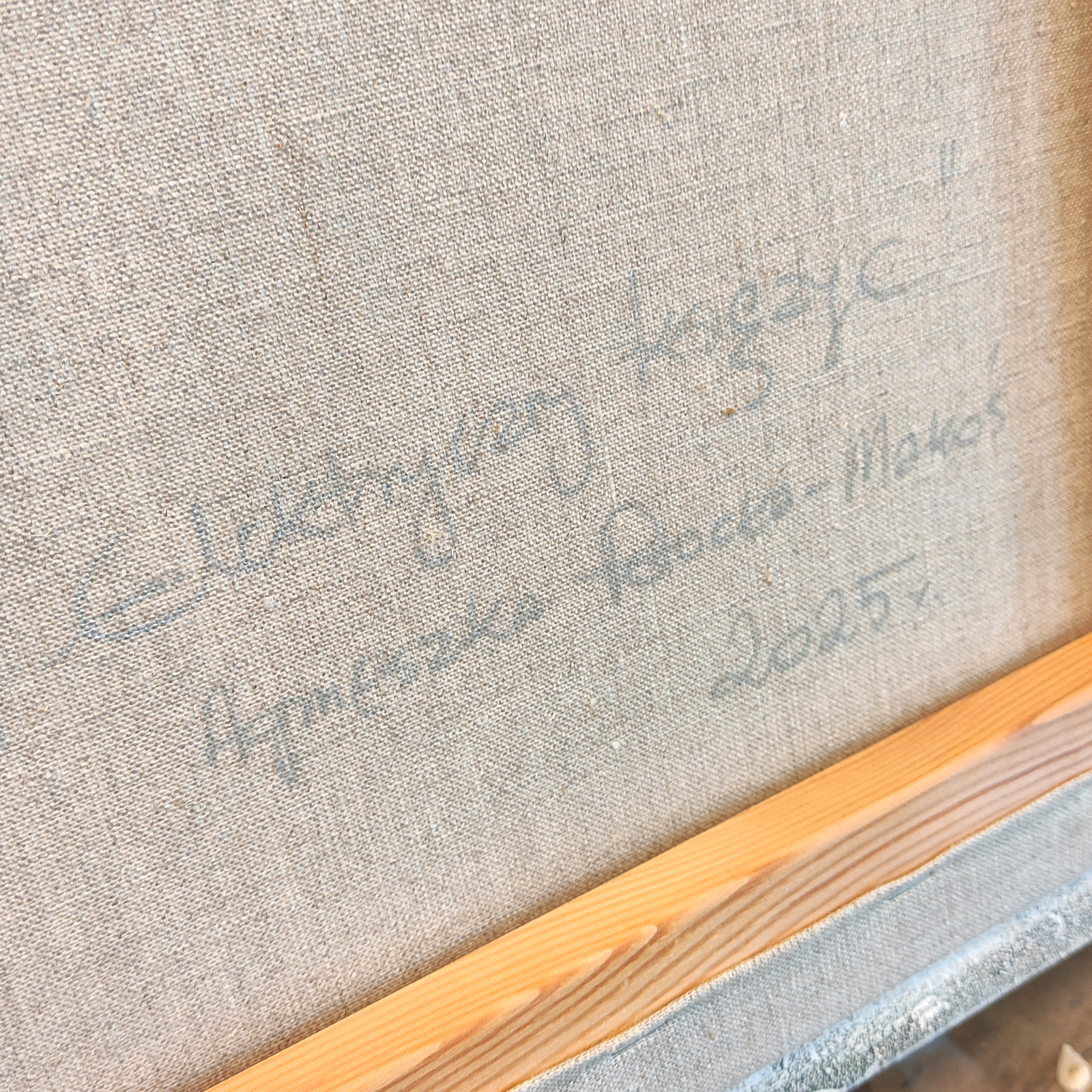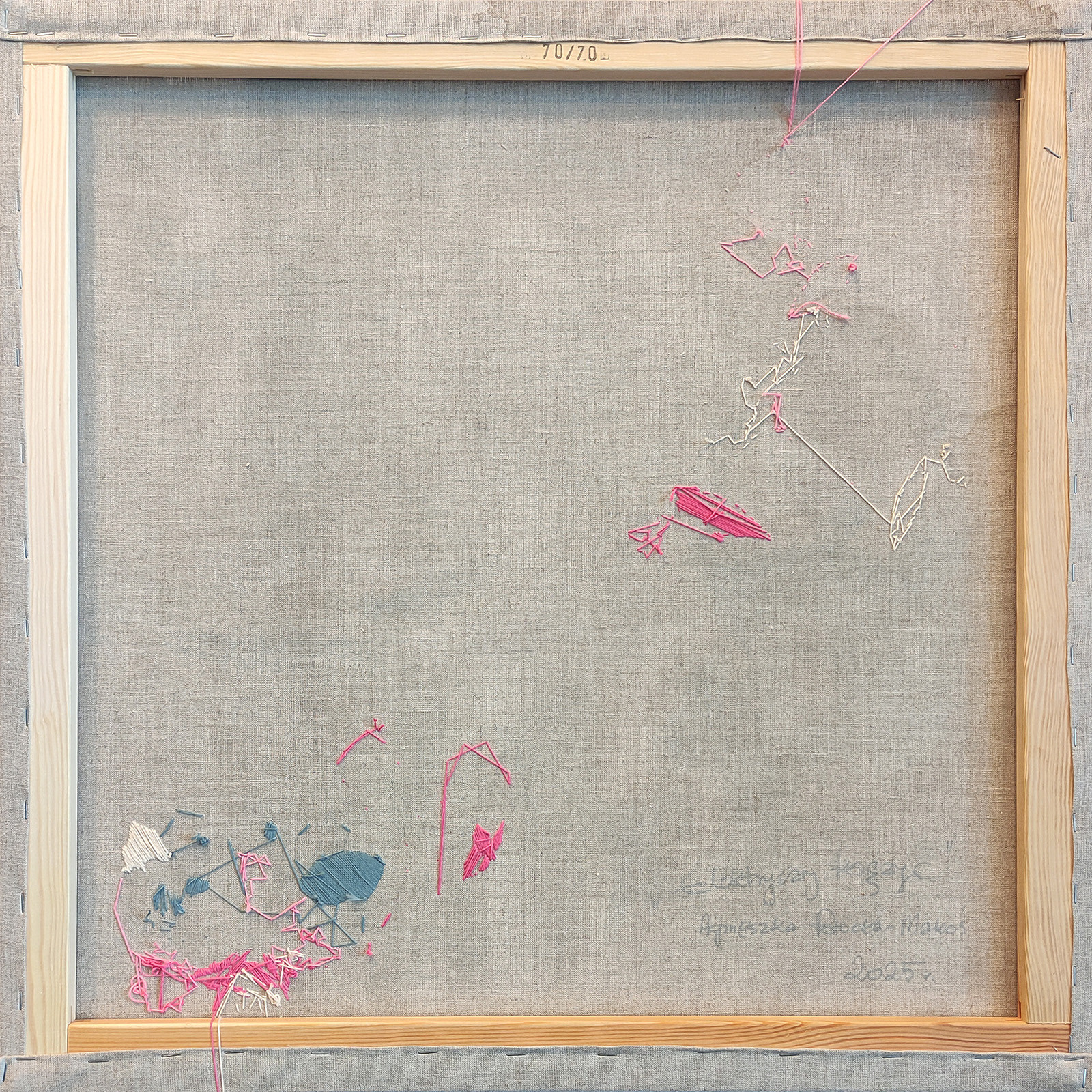 Z tyłu obrazu w prawym dolnym rogu znajduje się sygnatura Agnieszka Potocka-Makoś, Elektryczny księżyc, 2025.