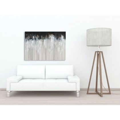 Obraz utrzymany jest w odcieniach bieli, brązu, szarości i czerni. Technika wzorcowego obrazu - akryl na płótnie.