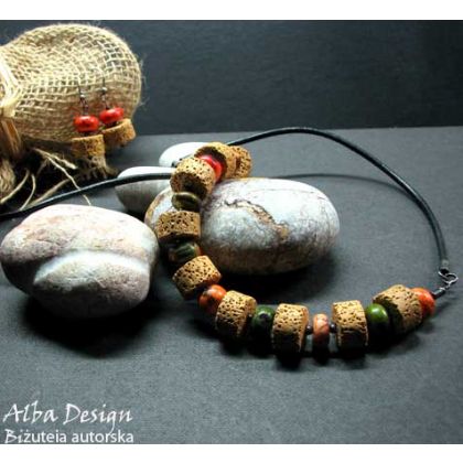 Etno, "surowy" stylowo , z lawy wulkanicznej, skromny - ale bardzo ładny komplet. Dostaw... >>