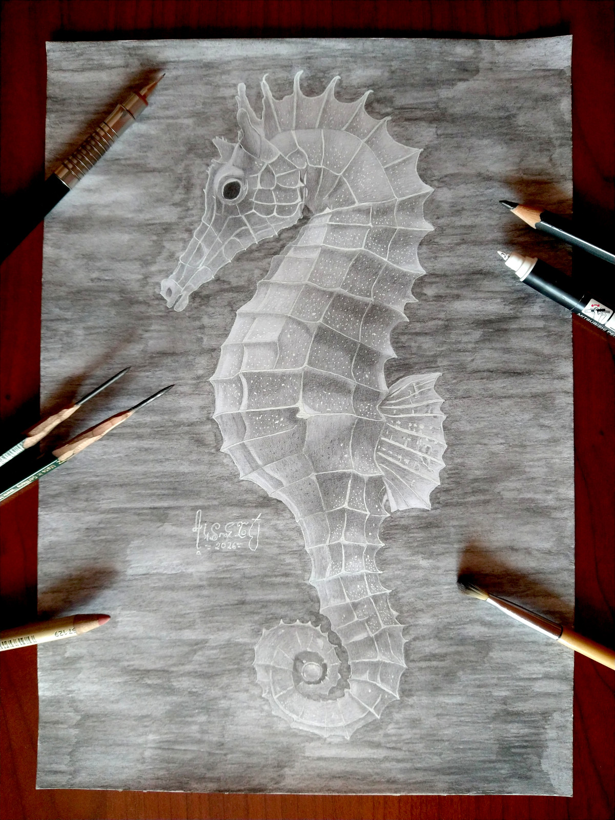 Zrobiony na bloku technicznym ołówkami dobrej jakości i zabezpieczony lakierem. Nie wyblaknie na słońcu.