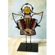 Aniołek witrażowy wykonany z wysokiej jakości szkła witrażowego spectrum (USA) i metali kolorowych (miedź, mosiądz, cyna). Wykonanie technika Tiffany. Patynowany na czarno. Wysokość aniołka 13 cm, podstawka 6 x 6 cm. Możliwy wybór różnej kolorystyki przez kupującego.