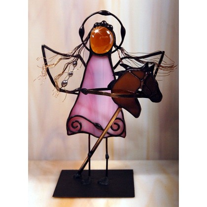 Aniołek witrażowy 3D dziewczynka z kon