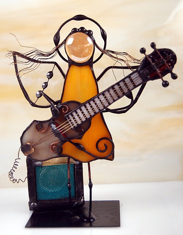 Aniołek witrażowy 3D z gitarą basową