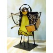 Aniołek witrażowy wykonany z wysokiej jakości szkła witrażowego spectrum (USA) i metali kolorowych (miedź, mosiądz, cyna). Wykonanie technika Tiffany. Patynowany na czarno. Wysokość aniołka 13 cm, podstawka 6 x 6 cm.