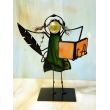 Aniołek witrażowy wykonany z wysokiej jakości szkła witrażowego spectrum (USA) i metali kolorowych (miedź, mosiądz, cyna). Wykonanie technika Tiffany. Patynowany na czarno. Wysokość aniołka 13 cm, podstawka 6 x 6 cm. Możliwa inna wersja kolorystyczna do uzgodnienia z kupującym.