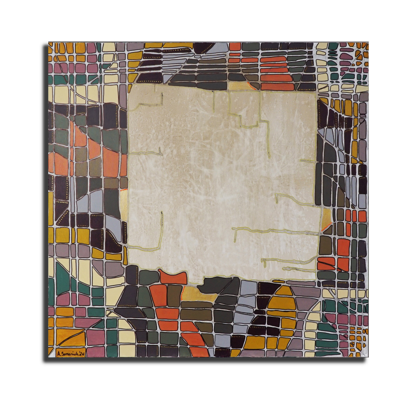 Abstra-akt 32 - płótno 100 x 100 cm, akryl, boki zamalowane na czarno.