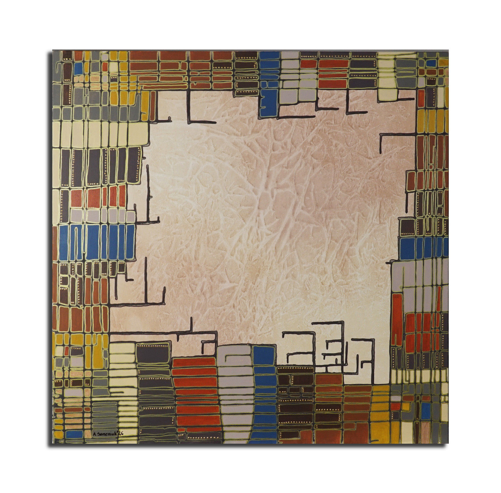 Abstra-akt 35 - płótno 100 x 100 cm, akryl, boki zamalowane na czarno, sygnatura w lewym, dolnym rogu.