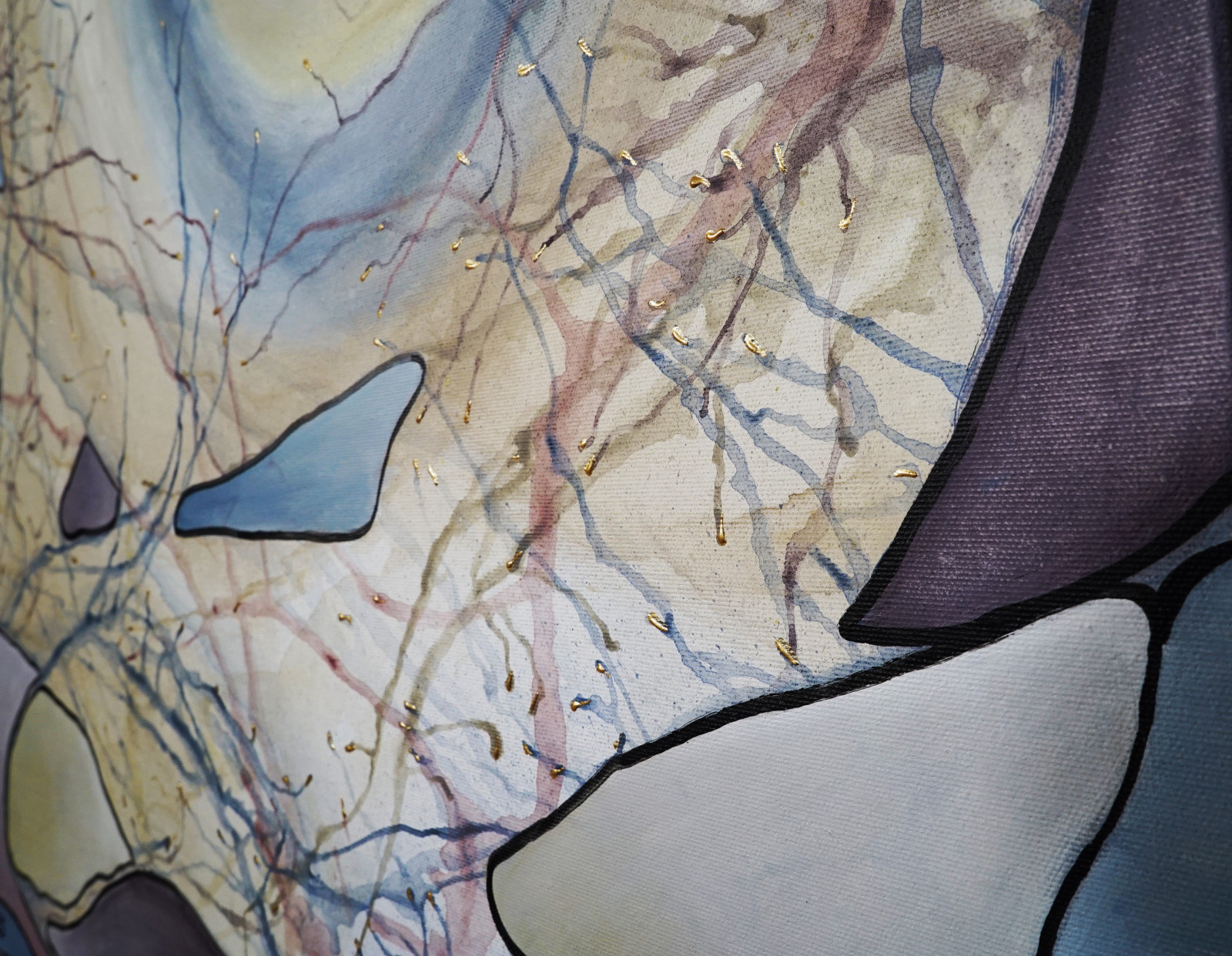 Intuicyjnie 1 - płótno 100 x 80 cm, akryl. Boki zamalowane. Sygnatura w dolnym, lewym rogu.