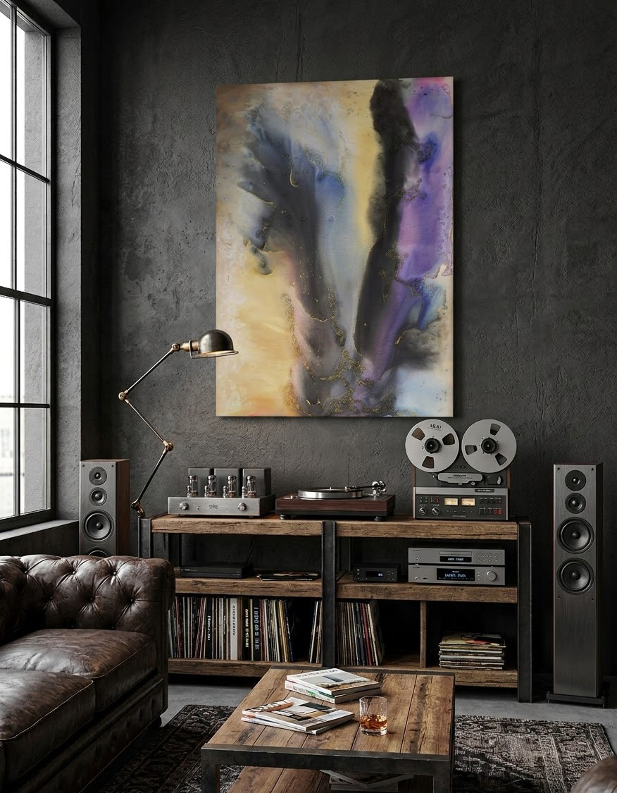 Moje mgły 54 - płótno 150 x 100 cm, akryl, boki zamalowane na czarno. Obraz można powiesić w pionie jak i w poziomie. Sygnatura z tyłu obrazu. Boki zamalowane na czarno.