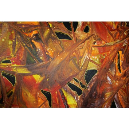 Obraz z cyklu pt. Zawiłości malowany na płótnie 80 x 80 cm, farby akrylowe. Boki zamalowane na czarno. Praca sygnowana w lewym, dolnym rogu. Wszystkie moje prace malowane są w jedynych egzemplarzach. Kolorystyka może nieznacznie różnić się ze względu na ustawienia monitorów.