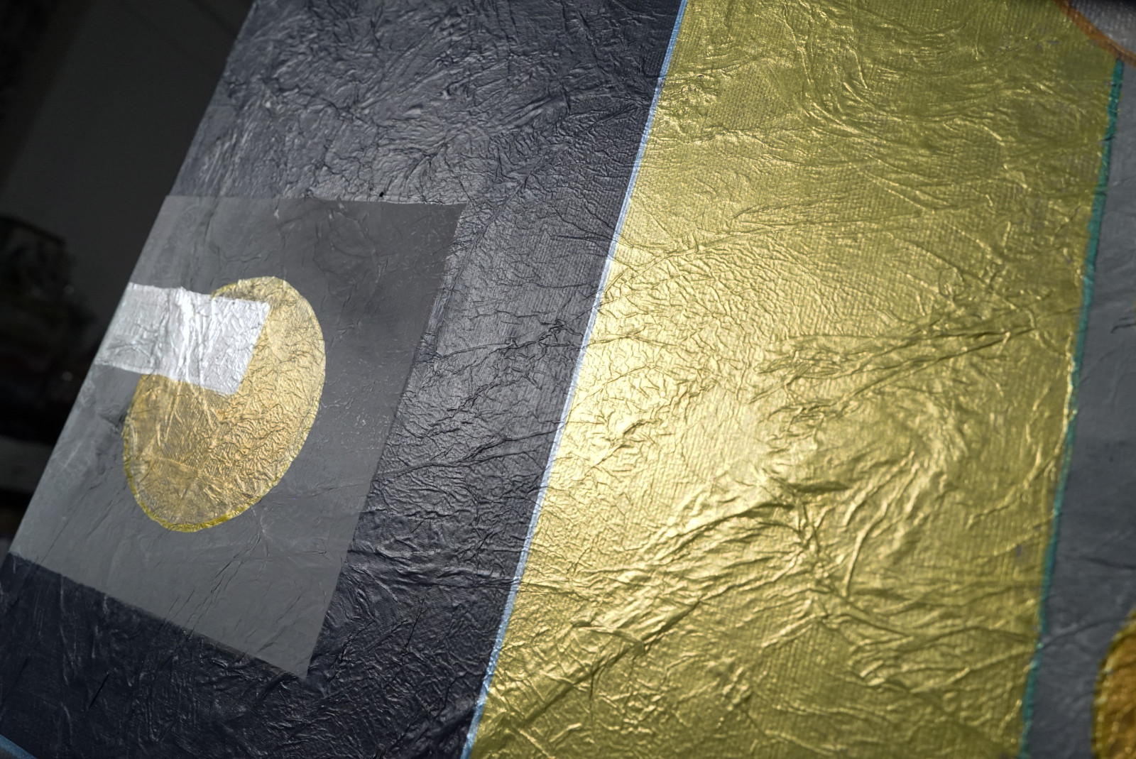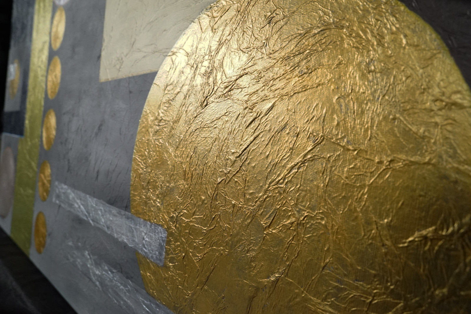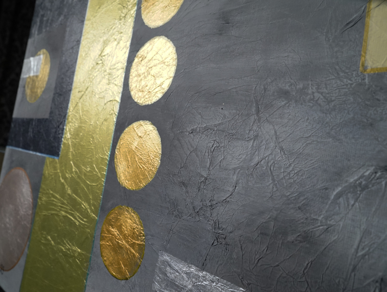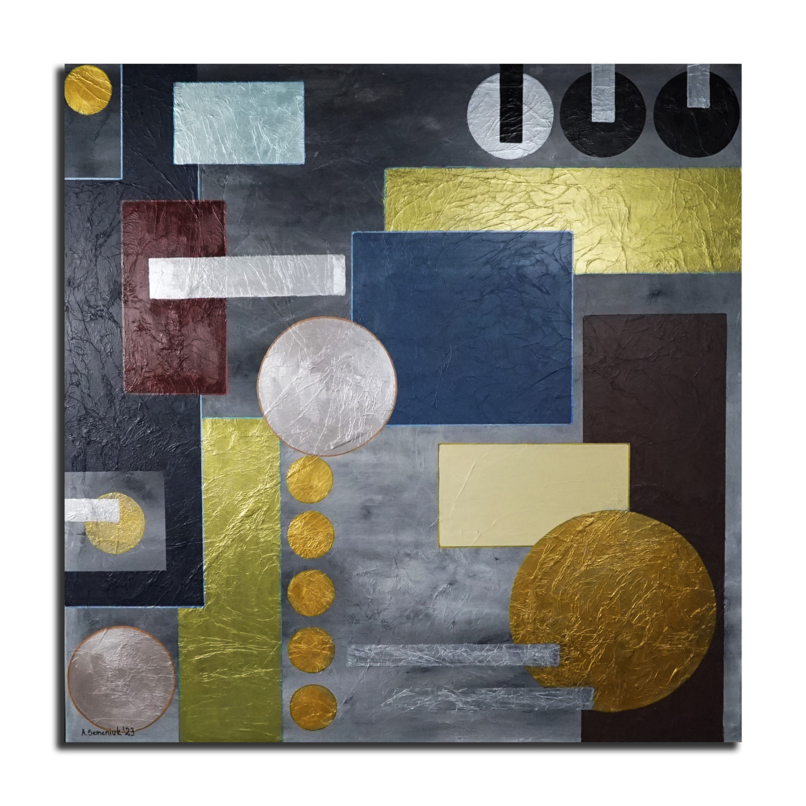 Geometria abstrakcyjna 2 - płótno 100 x 100 cm, farby akrylowe, struktura, boki zamalowane na czarno. Sygnatura w lewym, dolnym rogu.