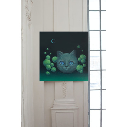 Surrealistyczny obraz olejny na płótnie 3D o wymiarach 29x29cm.