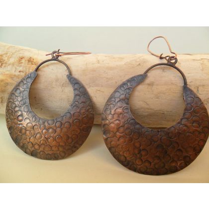 Oto cudowne miedziane kola z interesujaca faktura.Kola 5 na 5,5cm.Miedziane dlugie bigle i co najwazniejsze..pieknie polyskuja w sloncu!