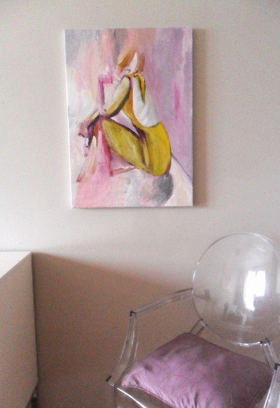 Obraz na płótnie w technice akrylu i oleju,format 50x70cm. Boki zamalowane w tej samej tonacji.