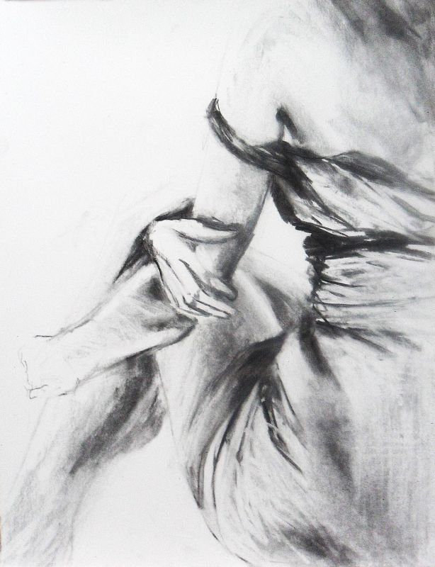 Rysunek węglem i ołówkiem na ciepłej bieli,40/35cm.Wysyłka prac w tubie.Polecam.
