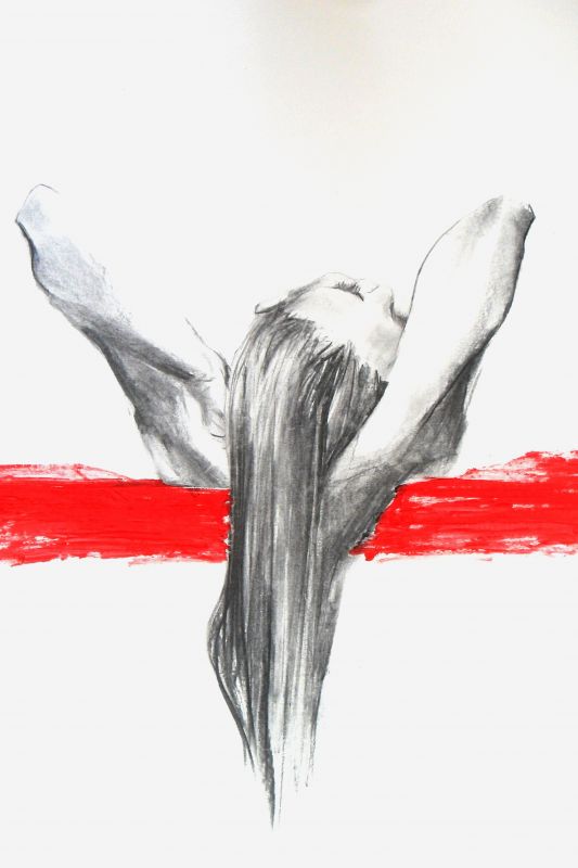 Rysunek węglem i akrylem na ciepłej bieli,50 na 70cm.Wysyłka w tubie.