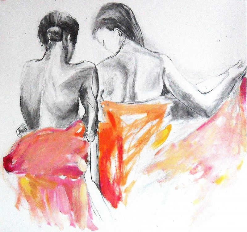 Rysunek węglem i akrylami na ciepłym tle w odcieniu ecru.Wymiary 80 na 70cm.Wysyłka w tubie.