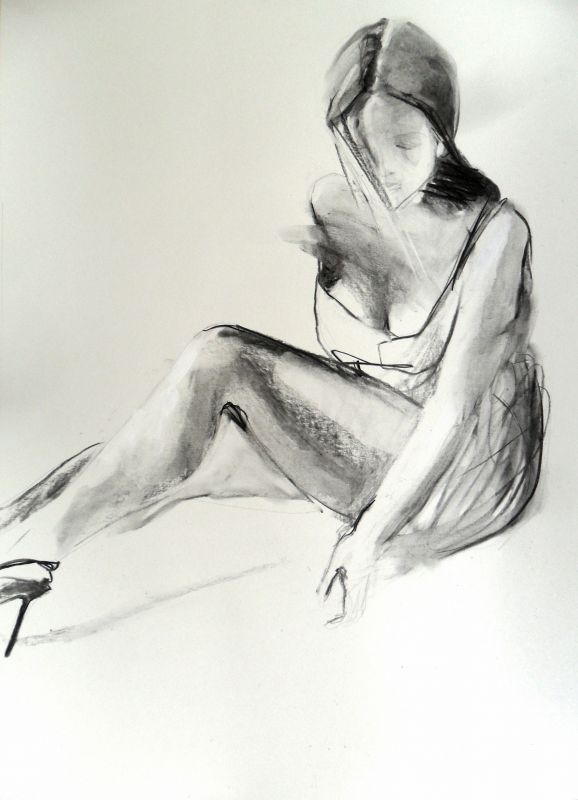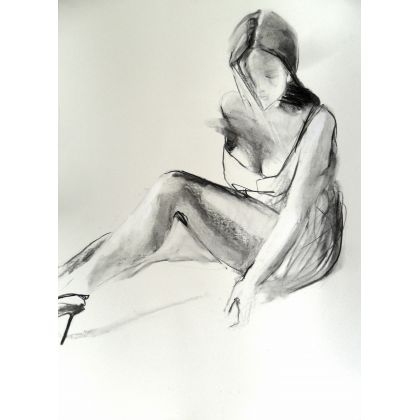 Rysunek węglem i białym akrylem na delikatnym ecru,50/70cm.Wysyłka w tubie.