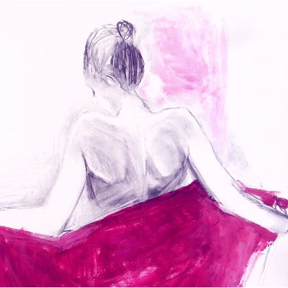 Rysunek węglem i akrylem,100/70cm.Chusta w kolorze ciemnego różu.Wysyłka prac w tubie.
