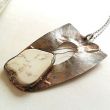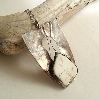Duzy,romantyczny wisior z plastrem bialego howlitu.Miedz,patynowana cyna,howlit,lancuszek.Wymiary 9 na 5,5cm.Idealny na lato!
