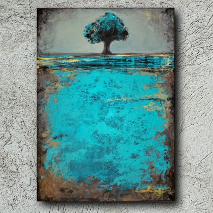 Malarstwo akrylowe, fakturalne + techniki własne na płótnie (100% bawełna).Wymiary 70x50cm. Kolory zdjęcia mogą się nieco różnić od oryginału (ustawienia monitora, foto-światło -sztuczne oświetlenie).
