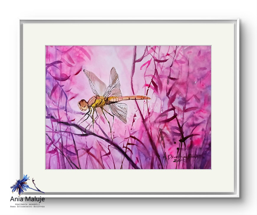Duża akwarela, namalowana na wysokiej jakości papierze akwarelowym 100% bawełna, FABRIANO WATERCOLOUR 300 GSM, farbami Roman Szmal Aquarius oraz Daniel Smith, sygnowana, oprawiona w passe-partout w kolorze białym lub ecru. Rok powstania 2025. Praca bez ramy.