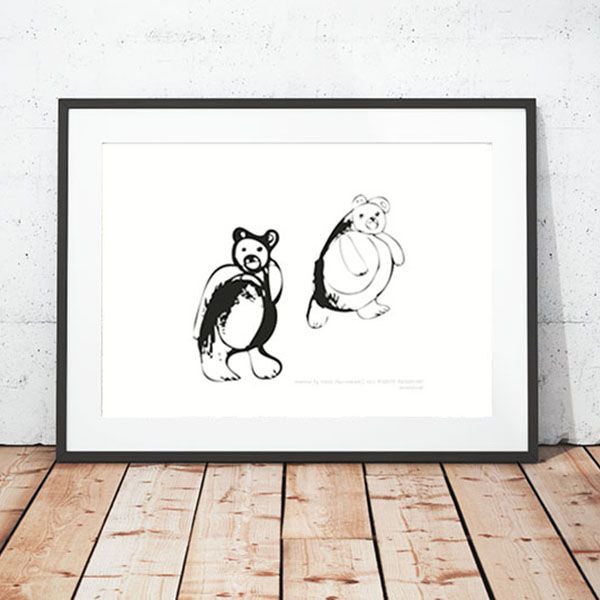 Misie plakat biało czarny do dziecięcego pokoju, grafika formatu 21 x 30 cm. Zabawna autorska ilustracja, druk na grubym papierze, delikatne ecru. Plakat należy umieścić w fotoramie lub antyramie.
