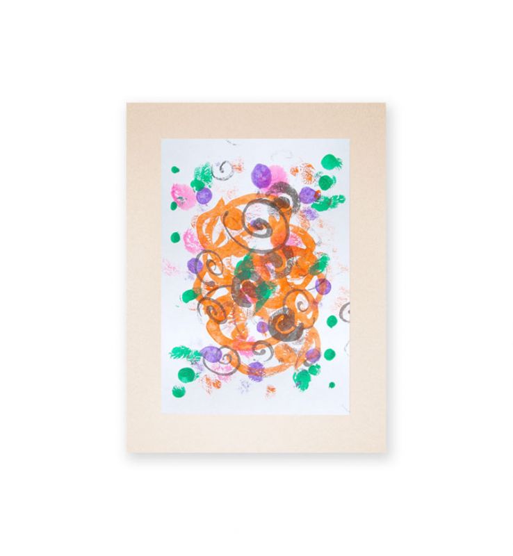 Abstrakcyjna, dynamiczna kompozycja. Oryginalna i niepowtarzalna grafika, ręcznie wykonana w technice monotypii na grubym papierze (270 gsm) z użyciem farb akrylowych. Praca naklejona na kremowe tło 30x40 cm, oznakowana inicjałami A.S. Obrazek można dowolnie zawiesić - w pionie lub poziomie. Pracę wystarczy samemu oprawić w antyramę lub fotoramę w podanym rozmiarze. Oryginalna dekoracja do nowoczesnych wnętrz.